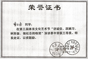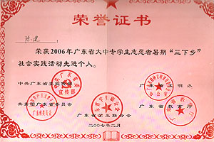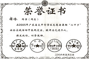 陈冰参加广东省大中专学生暑期“三下乡”评为先进个人