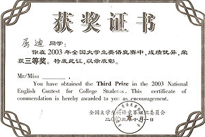 杨淼获得本科毕业论文三等奖,专项优胜奖