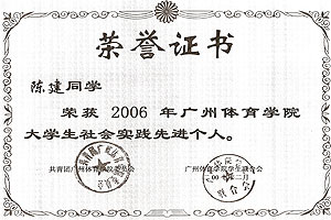 陈建参加广东省大中专学生暑期“三下乡”评为先进个人