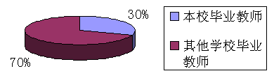 3、在教学队伍中本校毕业有3人,占教师队伍人数30%;其他学校毕业教师有7人(北京体育大学1人,华南师范大学2人,上海体育学院1人,湖北大学2人,湖南师范大学1人),占教师队伍人数的70%。